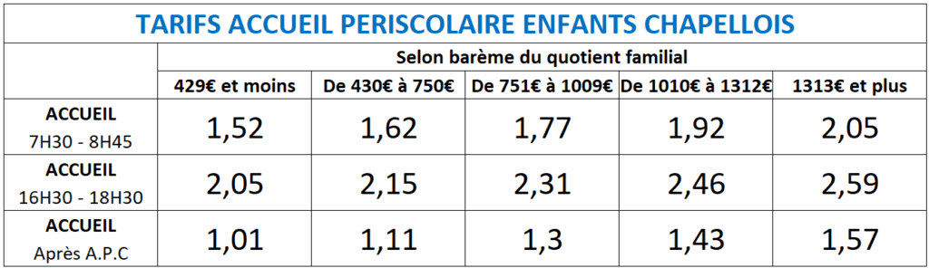 • La prise en charge des enfants s’effectue dès la sortie de la classe, la facturation commence à ce moment là.